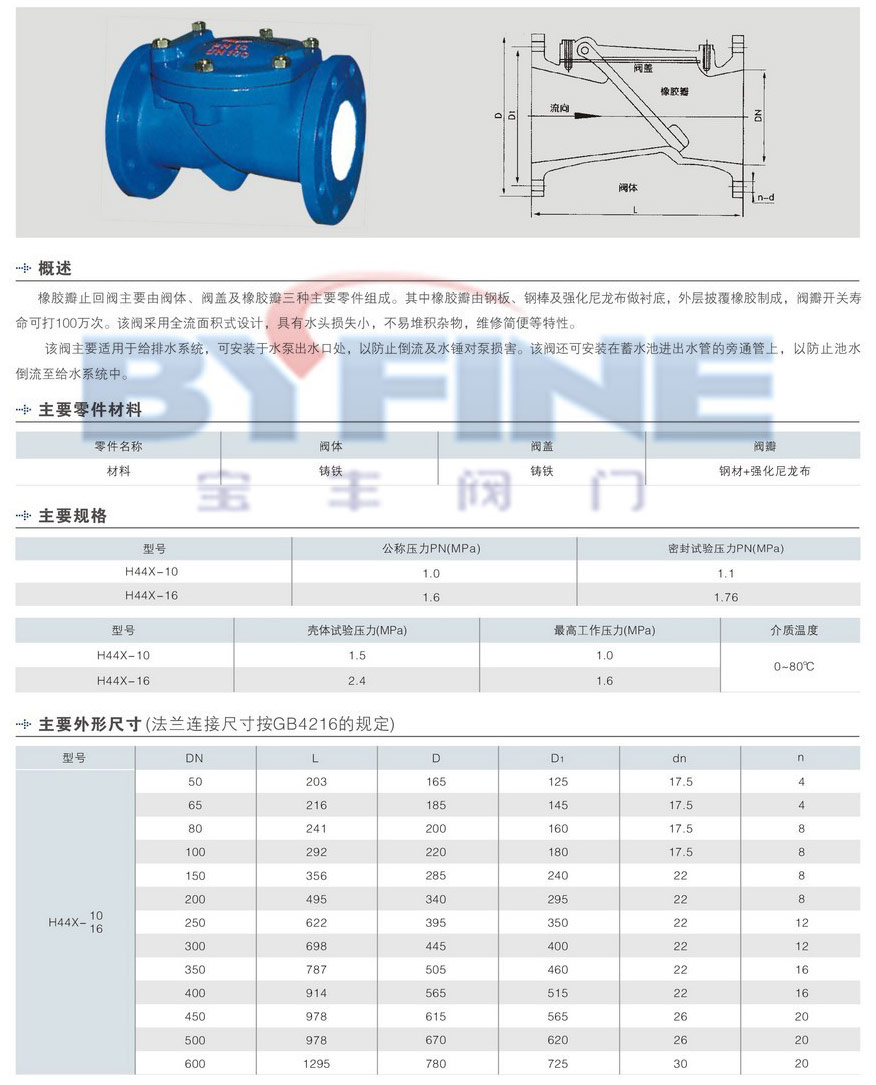 上海宝丰阀门有限公司是集设计开发、生产、安装、销售、服务于一体的阀门专业制造企业。公司产品橡胶瓣止回阀SFCV、H44X 质量可靠,生产历史悠久、技术力量雄厚、工艺、性能稳定、检测设备齐全,深受广大客户的好评信赖。
